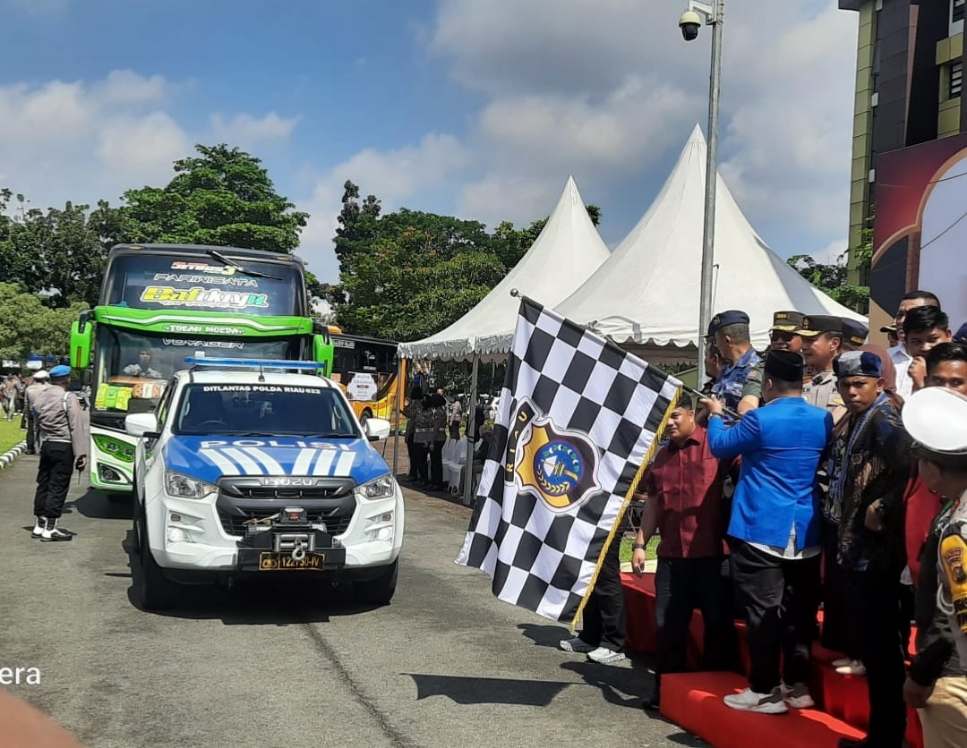 Photo: Kapolda Riau Melepas Keberangkatan 4 Bus Dalam Rangka Mudik Kebangsaan