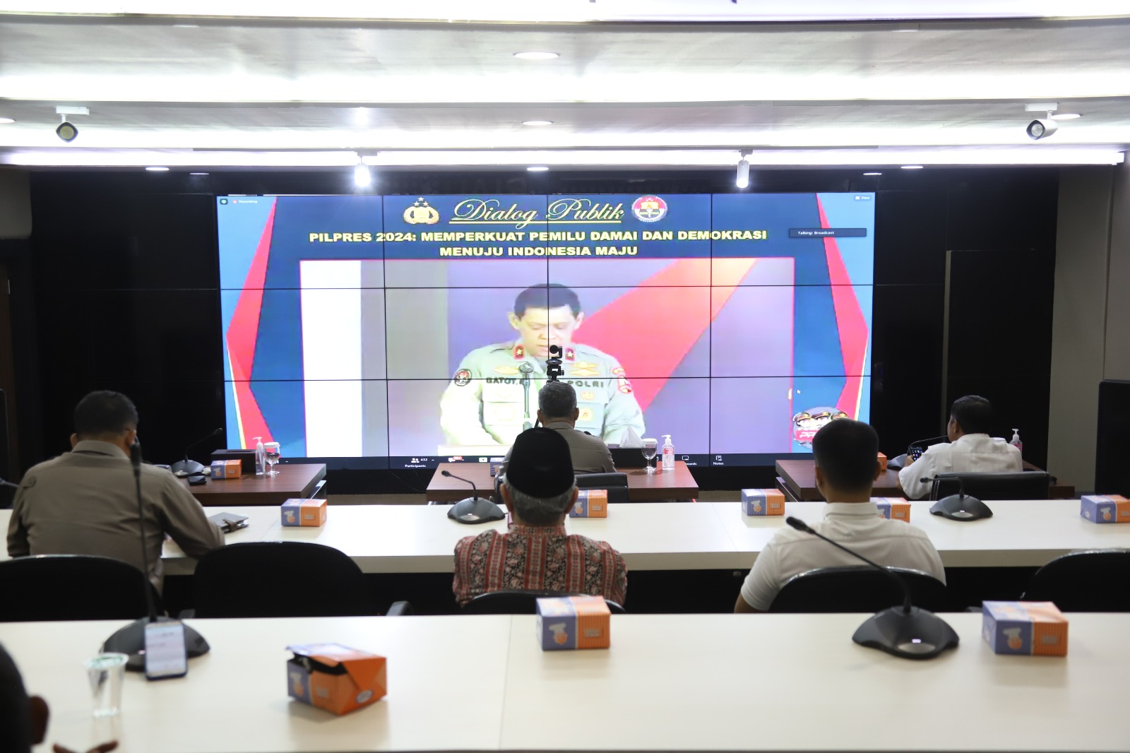 Karo Multimedia Divhumas Polri BRIGJEN POL GATOT REPLI HANDOKO dalam sambutan membuka acara menyampaikan beberapa hal terkaid Pemilu di Indonesia diselenggarakan sebagai salah satu perwujudan negara demokrasi. Kontestasi politik ini tidak pernah lepas dari potensi kerawanan. Peran Polri dalam pemilu tahun 2024 yaitu potensi kerawanan, system dan pola pengamanan, strategi cooling system, sinergitas 6 pilar untuk pemilu yang aman, damai,dan kondusif.