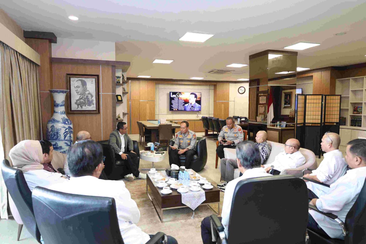Kedatangan pengurus PWI yang dipimpin Ketua Raja Isyam Azwar dan Ketua Dewan Kehormatan Zufra Irwan diterima Kapolda Riau Brigjen Herry Haryawan dan Kabid Humas Kombes Anom Karibianto di ruang kerjanya.